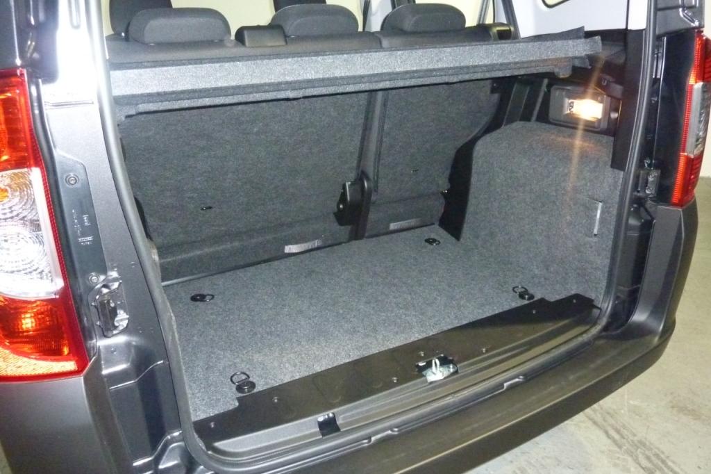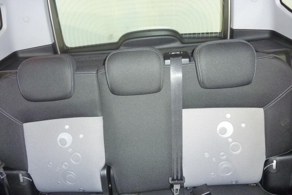 - Asientos traseros de tres plazas de tipo banco partido desmontables de orientación delantera con banqueta partida, respaldo abatible asimétrico y banqueta/respaldo plegable hacia delante