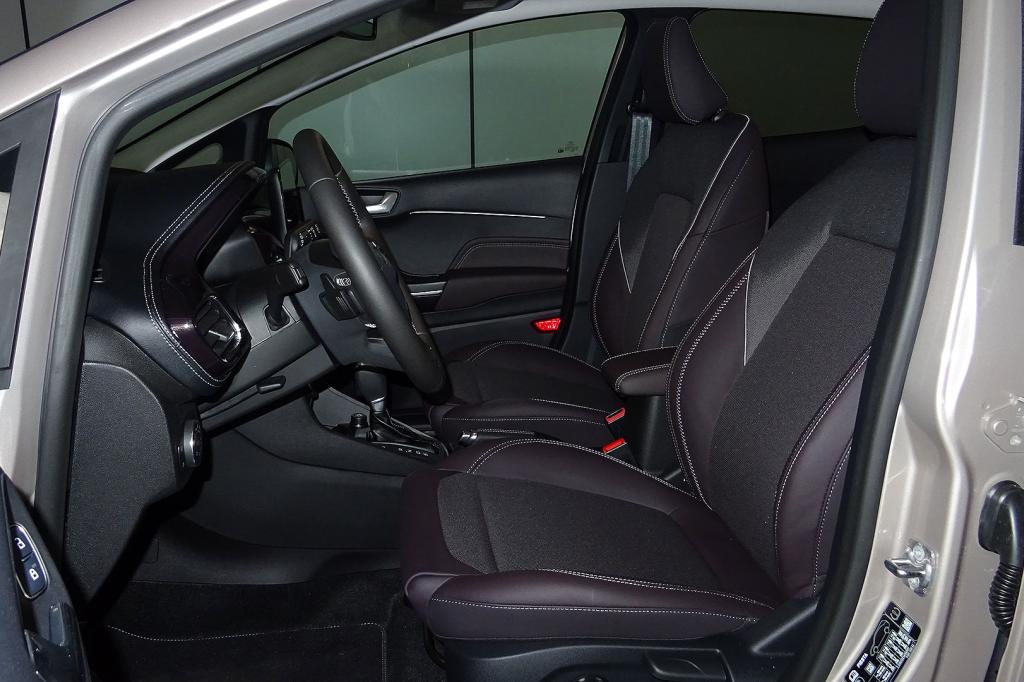 - Asientos de tela (material principal) y de cuero (material secundario)