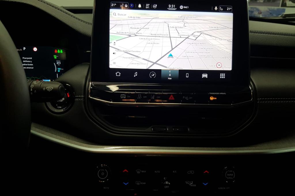 - Navegador con datos vía memoria interna/disco duro y pantalla a color de 10,10 " con información en 3D y con voz, control mediante pantalla táctil y información de tráfico 25,7 y 0