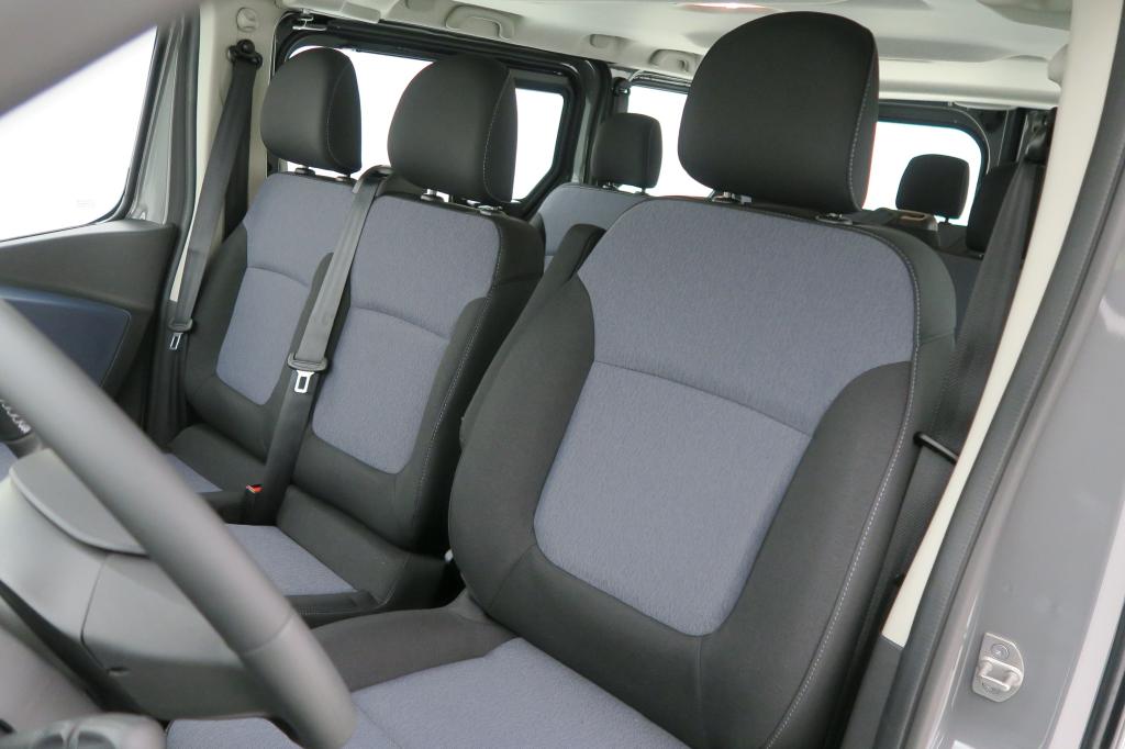 - Asiento delantero del conductor individual, ajuste longitudinal manual, ajuste manual en altura y ajuste lumbar manual con ajuste manual del respaldo, asiento delantero del acompañante tipo banco, asiento delantero central tipo banco con respaldo plegable a posición de mesa