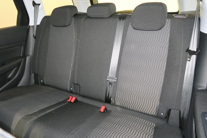 - Asientos traseros de tres plazas de tipo banco de orientación delantera con banqueta fija y respaldo abatible asimétrico con plegado remoto