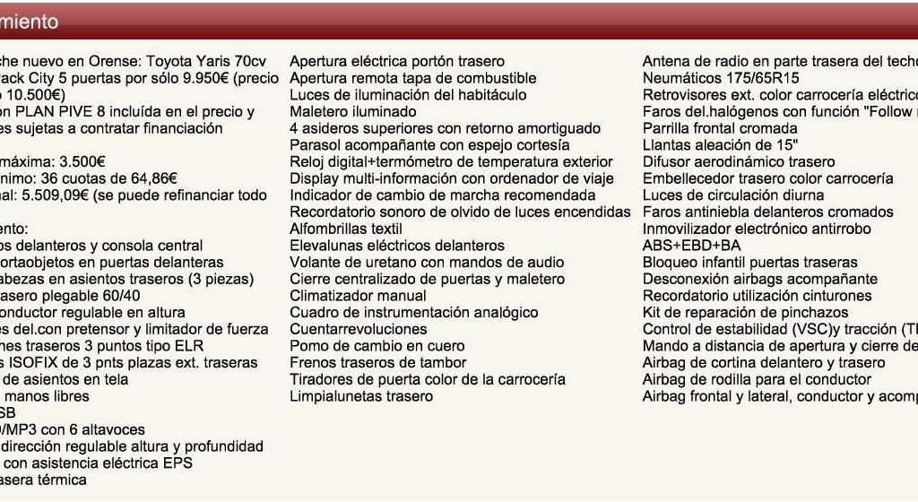 - Garantía de asistencia en carretera: 36 meses distancia 100.000 km