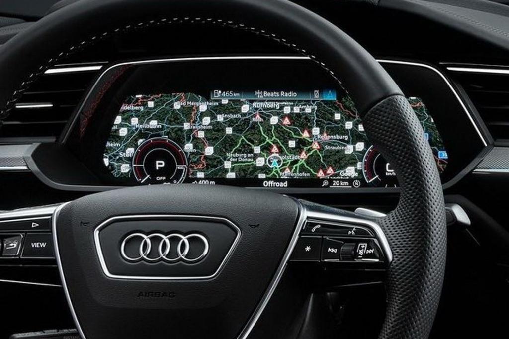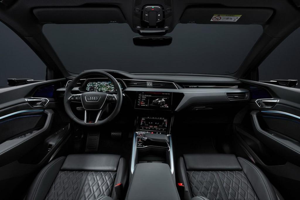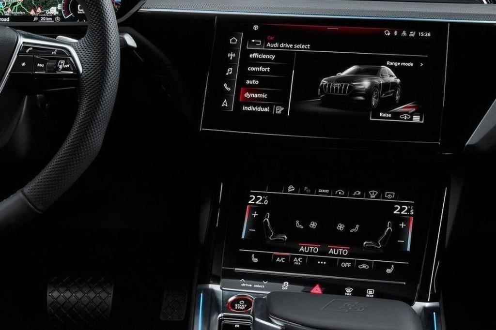 Como todos los modelos de la clase de lujo de Audi, el Q8 e-tron utiliza el sistema operativo MMI touch response. Sus dos grandes pantallas de alta resolución, la superior con una diagonal de 25,6 centímetros (10,1 pulgadas) y la inferior con 21,8 centímetros (8,6 pulgadas), sustituyen a casi todos los interruptores y mandos convencionales. Además del manejo a través de las dos pantallas táctiles, muchas funciones pueden activarse mediante el control por voz con reconocimiento de lenguaje natural. El concepto de visualización y manejo digital del Audi Q8 e-tron se completa con el Audi virtual cockpit con resolución full HD. Sus gráficos específicos muestran la información importante relativa a la conducción eléctrica, desde el rendimiento de la recarga hasta la autonomía. Opcionalmente se puede instalar el sistema head-up display, que proyecta directamente los datos de la instrumentación en el parabrisas. En el mercado español , el Audi Q8 e-tron equipará de serie el MMI Navegación plus. Su centro multimedia es compatible con el estándar de transmisión de datos de alta velocidad LTE Advanced, y cuenta con un punto de acceso Wi-Fi integrado que permite la conexión de los dispositivos móviles de los pasajeros. El sistema de navegación recomienda destinos de forma inteligente en función de las rutas recorridas con anterioridad. Además, el paquete de navegación e infotainment Audi connect incluye los servicios car-to-X.