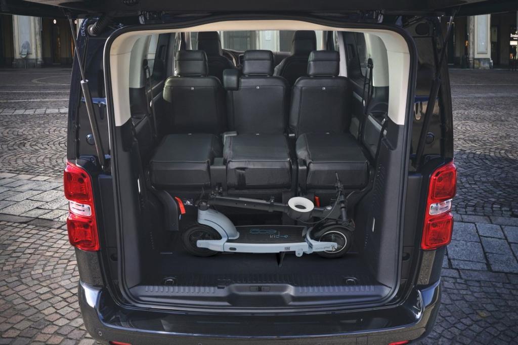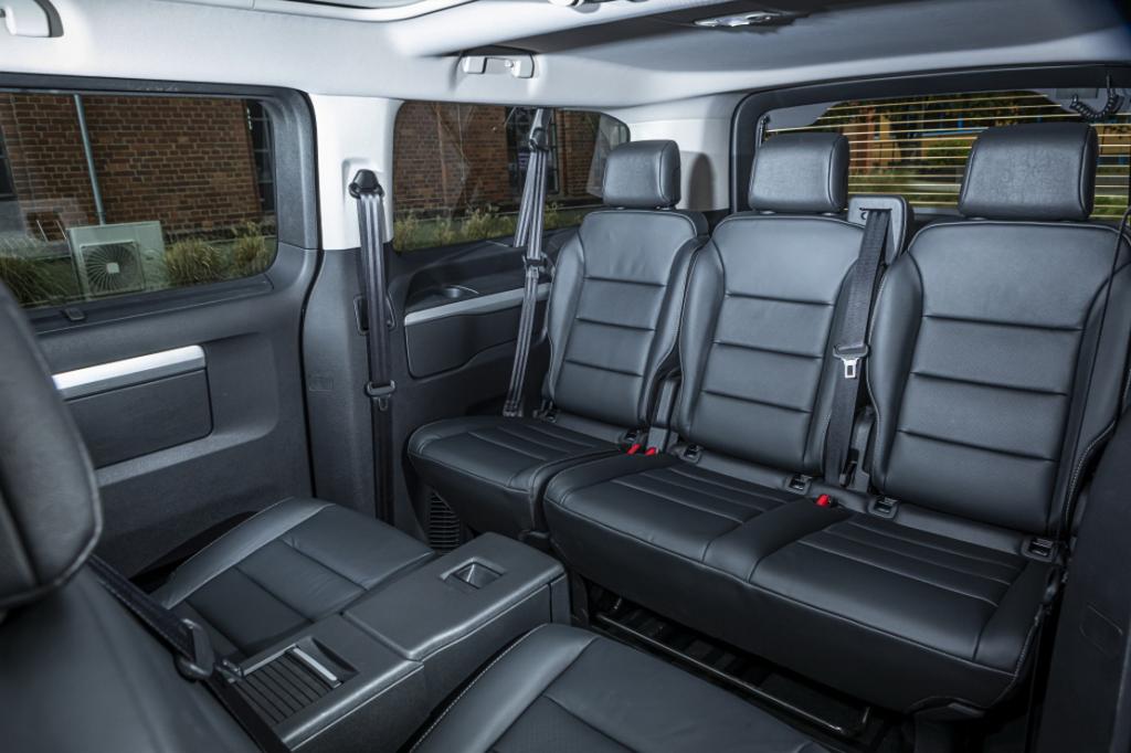 - Asientos traseros de tres plazas de tipo individual+banco desmontables de orientación delantera con banqueta fija, respaldo abatible asimétrico, respaldo abatible a posición de mesa, banqueta/respaldo plegable hacia delante y ajuste manual del respaldo