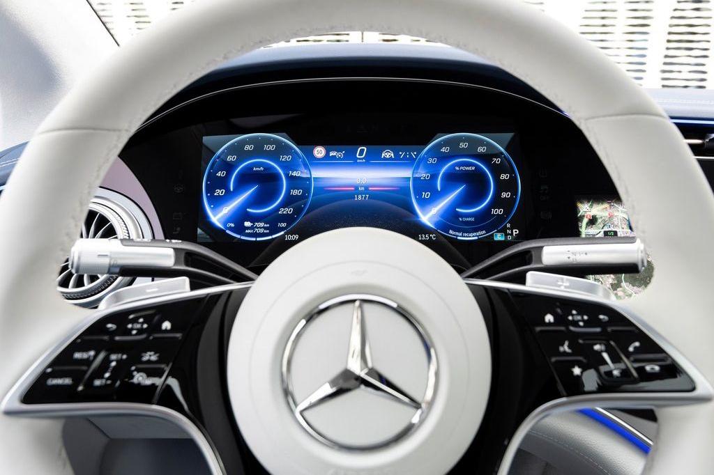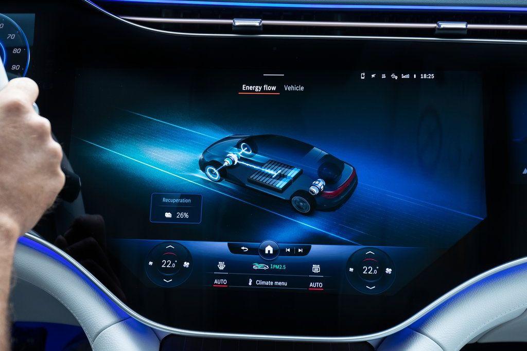 El equipo de navegación con Electric Intelligence evalúa numerosos factores para planificar la ruta más rápida y confortable al destino, incluyendo las paradas para recargar la batería, y reacciona de forma dinámica a diversos eventos, como una retención, o cambios en el estilo de conducción. Una novedad en el EQS es la visualización en el sistema de infoentretenimiento MBUX (Mercedes-Benz User Experience) de indicaciones, por ejemplo, sobre si la capacidad actual de la batería es suficiente para volver al punto de partida sin cargar la batería. En el cálculo de la ruta se otorga prioridad a las estaciones de carga añadidas manualmente por el conductor y situadas a lo largo del recorrido. También es posible excluir las estaciones de carga sugeridas por el sistema. El programa calcula los costes previsibles de la carga en cada parada.