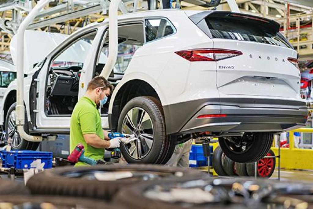 Škoda reanuda la producción de su eléctrico Enyaq iVLa fabricación se vio interrumpida debido a los cuellos de botella en la cadena de suministro.