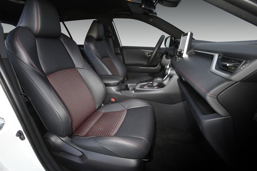 - Asientos de tela (material principal) y de cuero sintético (material secundario)