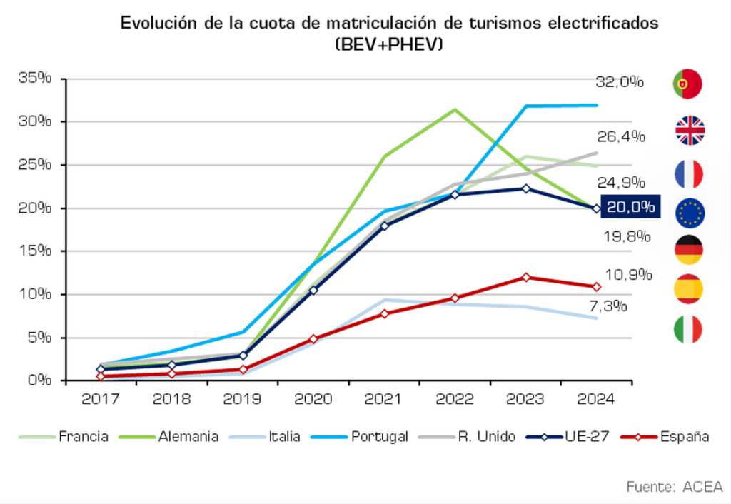 En el total del año, las ventas de turismos electrificados acumulan 100.802 unidades, lo que se sitúa un 0,5% por debajo del mismo periodo de 2023. Respecto a la cuota total de mercado es 6 décimas inferior al año anterior, representando el 11,06% del mercado general.