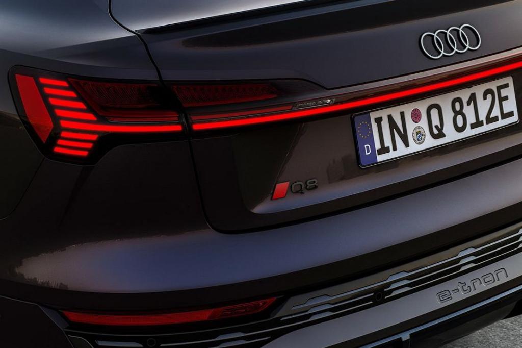 Adoptar la denominación Q8, que posiciona al modelo en lo más alto según la nomenclatura de Audi, es toda una declaración de intenciones, situando a los nuevos Audi Q8 e-tron y Q8 Sportback e-tron como los modelos superiores entre los SUV y los crossover eléctricos. Identificables a primera vista como modelos de propulsión totalmente eléctrica gracias al nuevo diseño de la carrocería tanto en el frontal como en la zaga, el Audi Q8 e-tron y el Q8 Sportback etron inauguran la nueva identidad corporativa de la marca, con un diseño bidimensional de los cuatro aros. También es nueva la grafía utilizada en la inscripción del nombre del modelo, situada en el pilar B. Para que el nuevo logo tenga mayor protagonismo en el frontal, Audi ofrece opcionalmente a partir de ahora una parrilla Singleframe luminosa que resalta los cuatro aros.