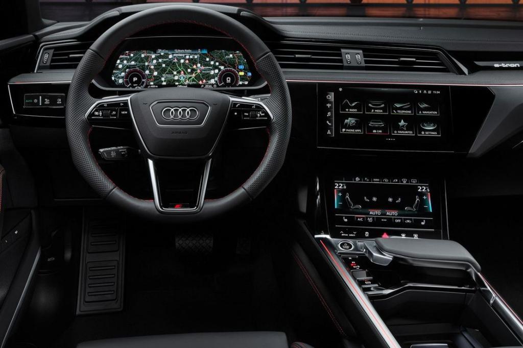 Las versiones tope de gama son el Audi SQ8 e-tron y el SQ8 Sportback e-tron, propulsadas por tres motores que ofrecen una potencia de sistema de 370 kW y un par máximo de 973 Nm. La autonomía en los modelos S es de hasta 465 km para el SUV y de hasta 483 km en el Sportback. La velocidad máxima está limitada en estas versiones a 210 km/h.