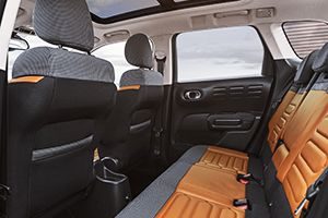 El C3 Aircross ofrece asientos anchos y confortables, y destaca por una habitabilidad de referencia (mejor altura bajo el techo, amplio espacio para las piernas), una modularidad sin rival (banqueta deslizante en 2 partes independientes y posibilidad de plegar el asiento del pasajero en forma de mesa para proporcionar una longitud de carga de 2,40 metros) y un volumen de maletero excepcional (410 litros, que pueden extenderse hasta 520 litros).El Citroën C3 Aircross destaca por sus prestaciones en todos los terrenos; es ágil en ciudad, gracias a sus dimensiones compactas, y siempre está dispuesto para afrontar con garantías las dificultados que se pueden llegar a presentar fuera del asfalto –ayuda en gran medida el perfecto ajuste de las suspensiones, su altura libre al suelo y el sistema ‘Grip Control’-.