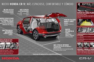 Honda lanzará en otoño la nueva generación del CR-V. Según Honda, será el modelo más práctico y confortable de todos los fabricados hasta la fecha. El primer CR-V original se lanzó en 1995 (en este enlace tienes información de todas las generaciones comercializadas en España).Respecto al CR-V que se comercializa actualmente, se ha aumentado la distancia entre ejes en 40 mm, y se ha incrementado la distancia al suelo en otros 40 mm. Este cambio, además del aumento en el ancho del vehículo en 35 mm, ha liberado más espacio para los ocupantes, al tiempo que se mantiene la longitud total.