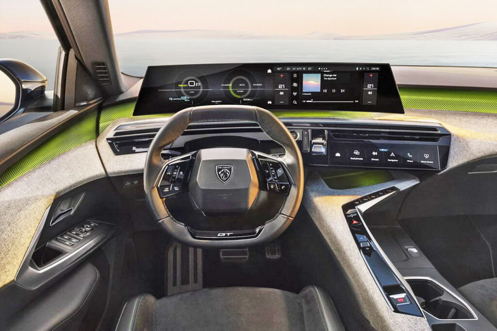 Por su parte, la versión deportiva GT, se presenta en pintura bitono con techo negro y tapicería Alcantara. Equipamiento de serie principal, además del de la versión Allure: llantas de aleación de 20", faros Pixel LED, sensores de aparcamiento delanteros, portón trasero motorizado, asientos delanteros y volante calefactados, cargador de smartphone por inducción, iluminación ambiental personalizable, Peugeot Panoramic i-Cockpit con pantalla curva de 21", i-Toggles personalizables, sistema de información conectada Peugeot i-Connect Advanced…