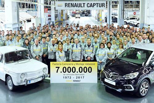 La factoría de Carrocería y Montaje de Renault en Valladolid ha fabricado hoy el vehículo siete millones desde su inauguración en 1972. La emblemática unidad corresponde a un Renault Captur versión Initiale Paris, de color Negro Amatista y techo Gris Platino con destino a un cliente de Francia.Han pasado 45 años, 19 modelos y 7 millones de unidades producidas, desde la inauguración de la factoría de Montaje 2 en 1972, hoy conocida como factoría de Carrocería y Montaje de Valladolid. En aquel momento, un Renault R8 era el primer vehículo que salía por la línea de producción de esta factoría. De este emblemático modelo se produjeron, en esta factoría, 97.728 unidades entre 1972 y 1976.