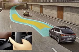 El asistente también está equipado con control de velocidad predictivo y asistencia en curva. La velocidad del vehículo puede ajustarse a los límites de velocidad pertinentes y al trazado de la carretera (curvas, rotondas, etc.). Dado que se dispone de datos de enjambre anonimizados de otros vehículos Volkswagen, el nuevo «Travel Assist con datos de enjambre» también puede ofrecer asistencia en carreteras con una sola delimitación de carril, por ejemplo, en carreteras rurales sin delimitación de carril central.
