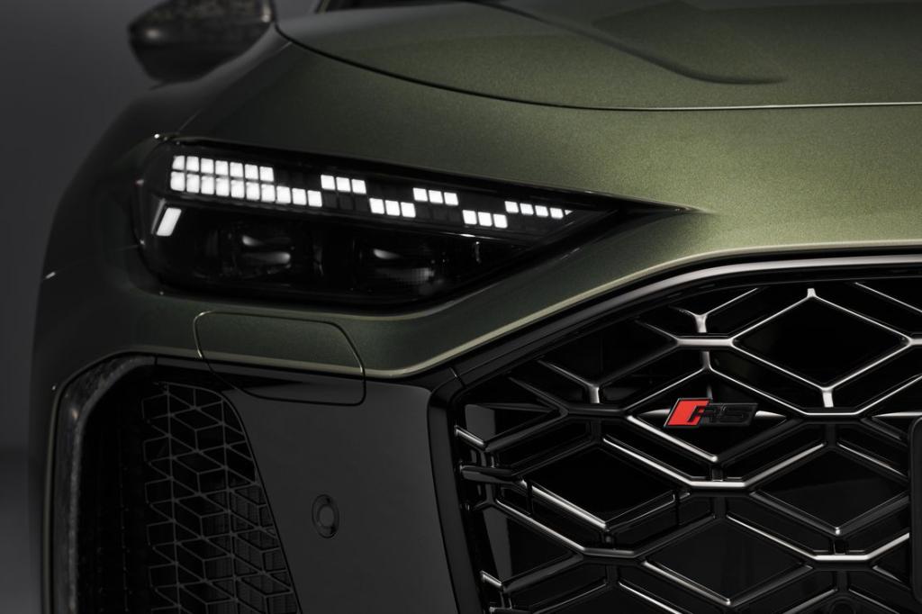 En el apartado estético, Audi indica que el RS 5 es aproximadamente nueve centímetros más ancho que el modelo básico, con paragolpes específicos, parrilla Singleframe con rejilla tipo panal, difusor trasero y salidas de escape ovaladas en acabado mate. Los faros Matrix LED oscurecidos incorporan una firma diurna digital con motivo de “bandera a cuadros”. En el mercado español se incluyen de serie pilotos traseros OLED de segunda generación.