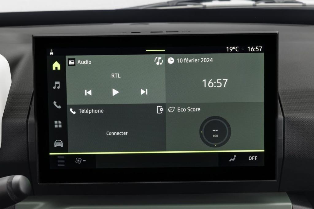 El salpicadero se ha reinventado por completo, tanto para integrar el nuevo diseño interior de Dacia, que se distingue por una arquitectura mucho más horizontal, como para integrar una nueva gama de pantallas digitales. Spring recibe un cuadro de instrumentos digital y personalizable con una pantalla de 7 pulgadas en todas las versiones y una gran pantalla multimedia central de 10 pulgadas en el nivel de acabado superior. Los colores y materiales del interior se han replanteado para ofrecer una calidad superior, pero minimizando la diversidad para controlar los costes, de acuerdo con la filosofía Dacia.