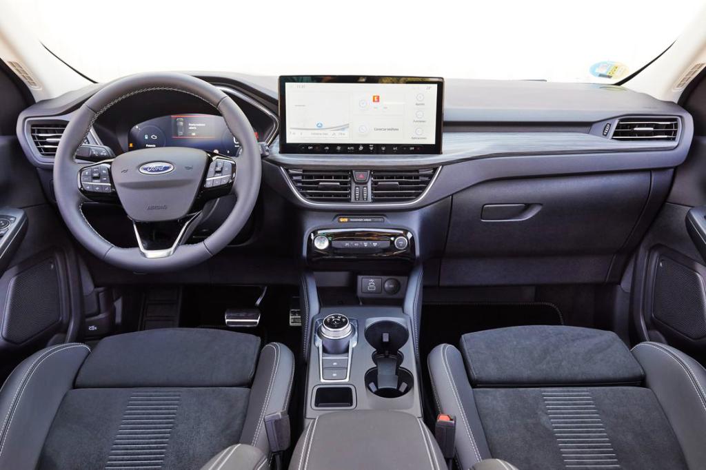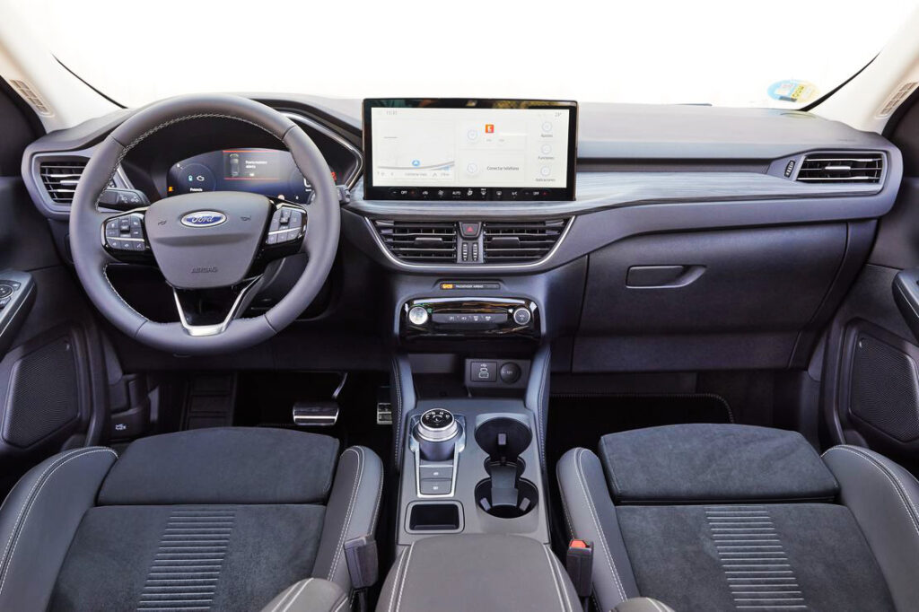 En el interior, el Kuga presenta funcionalidades mejoradas y un diseño más limpio, lo que ofrece al conductor y a los pasajeros un entorno más cómodo y relajante, junto con diversas opciones de infoentretenimiento.