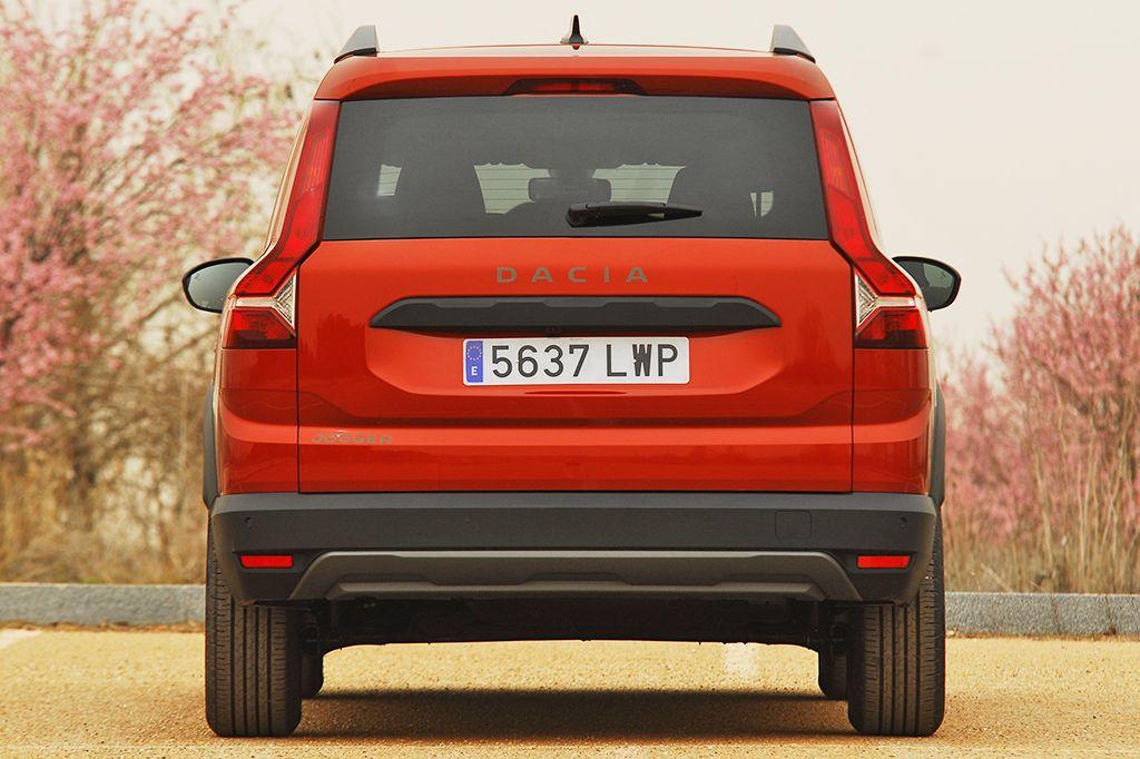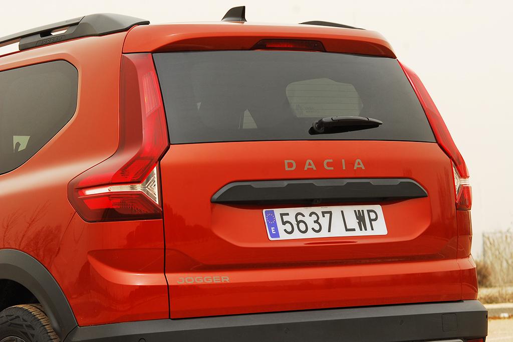 En cuanto a acabados y calidad de fabricación, este Jogger no desentona frente a otros modelos de similar categoría y precio superior. Todas las piezas de la carrocería plantean un muy buen ajuste y no hemos detectado faltas reseñables. Detalles en los que sí se percibe una clara reducción de costes, al margen de que las protecciones plásticas y el acero de la carrocería sean mejores o peores, son los diferentes emblemas que muestran la denominación del modelo. En este caso, son pegatinas en lugar de los habituales anagramas metálicos o de plástico. Sólo se salva el logo de Dacia que preside la parrilla frontal (en el embellecedor horizontal del portón no encontramos ningún logo de la marca, sólo la denominación comercial del modelo).