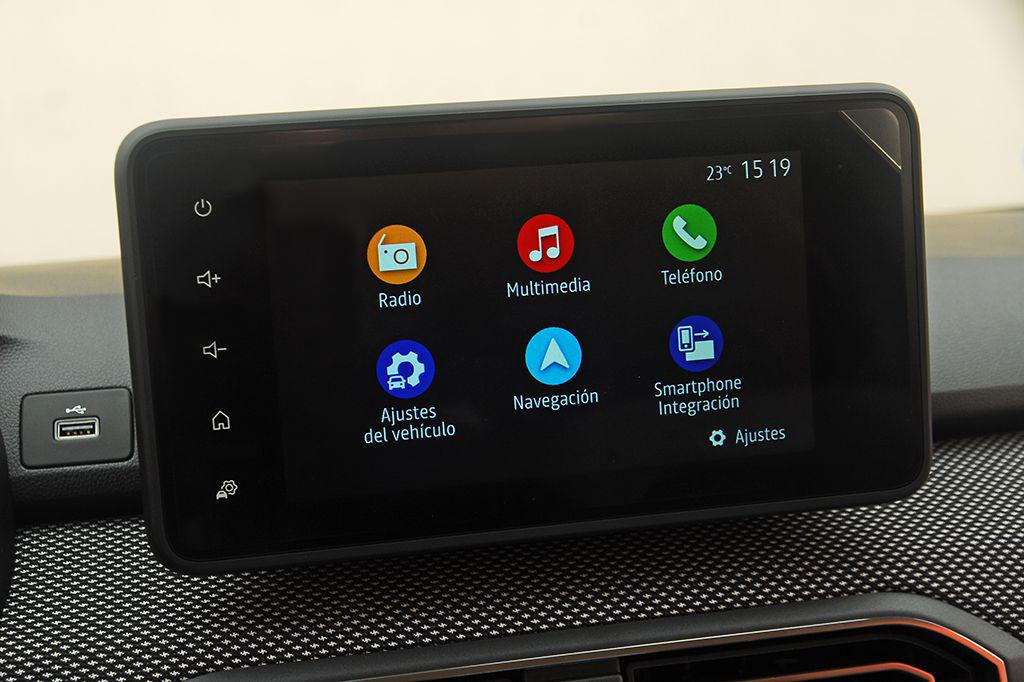 El Dacia Jogger incorpora tres ofertas multimedia para que cada uno pueda elegir su nivel de equipamiento según las versiones: el ingenioso Media Control que se controla con o sin el smartphone, el Media Display y su pantalla táctil de 8 pulgadas, el Media Nav con la navegación y la replicación del smartphone con Wi-Fi. La opción básica nos parece la más interesante de todas, ya que nos permite integrar muy bien nuestro smartphone y, al mismo tiempo, ahorramos dinero.