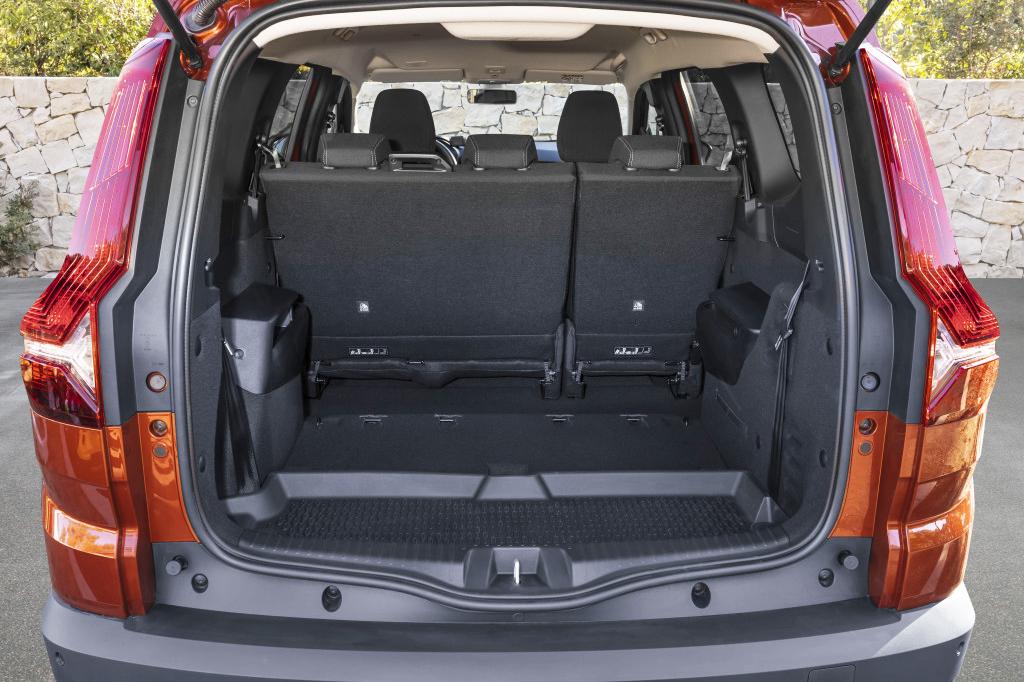 En la versión de 5 plazas, el volumen del maletero es de 708 litros VDA (parte superior del respaldo). Por su parte, en la versión de 7 plazas, el volumen es de 160 litros VDA, 565 litros VDA con la fila 3 abatida. Gracias a la altura de carga (661 mm) y al largo piso del maletero (1 150 mm), se pueden transportar horizontalmente un carrito de bebé y una bici infantil, sin necesidad de desmontarla, abatiendo uno de los asientos de la fila 3. Además, pueden llevar fácilmente sus equipos de senderismo, herramientas de bricolaje o sus mascotas a bordo retirando la fila 3. Para facilitar y asegurar el transporte, el maletero dispone de tensores elásticos y de cuatro anillas de amarre. También cuenta con una toma de 12 V. Dacia Jogger está equipado de tres ganchos: dos en el maletero y uno en la parte delantera, en el lado del pasajero (ideal para colgar un bolso de mano).