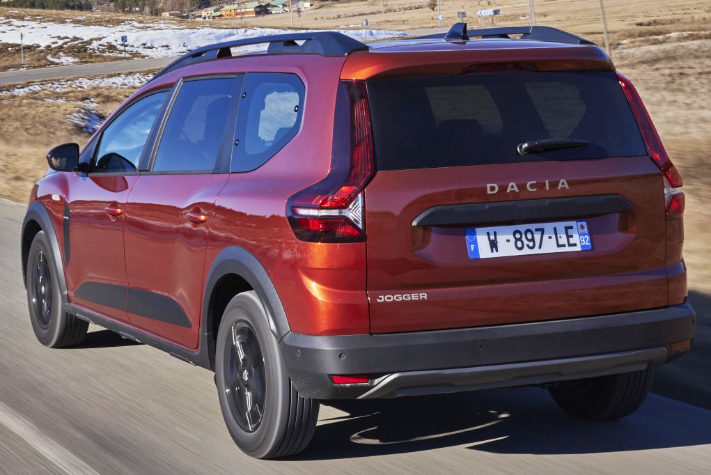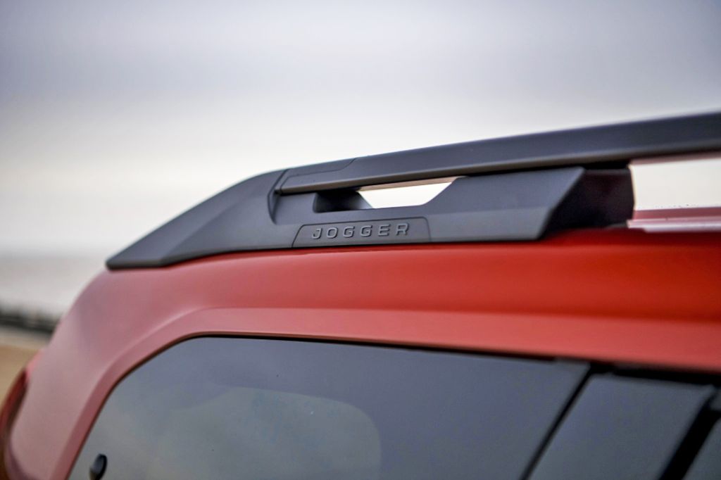 Equipado con unas ruedas de gran diámetro (660 mm) con un flanco de neumático alto, el Dacia Jogger produce una impresión de coche robusto. Su generosa distancia entre ejes de 2,90 m, su altura bajo techo de 912 mm y su parte trasera vertical (luces traseras verticales, portón muy ancho, umbral bajo) favorecen la habitabilidad interior, incluido el volumen del maletero. La mayor longitud de las puertas traseras y el resalte lateral de los cristales (40 mm) favorecen el acceso y la habitabilidad en las plazas traseras. Con 4,55 m, el Jogger es el más largo de los vehículos de la gama Dacia.