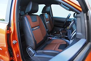El nuevo Wildtrak también cuenta con asientos exclusivos –incluido un asiento de conductor de ocho posiciones con ajuste eléctrico- con atrevidos elementos gráficos e hilo naranja que combinan solidez, resistencia y espíritu deportivo.