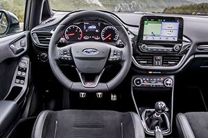 En su interior también hay detalles diferenciadores de serie, como los asientos firmados por Recaro, la palanca de cambios ST, los pedales de aluminio y el volante de base plana cosido, que se repite en la palanca del freno de mano de cuero y en el fuelle de la palanca de cambios.La sensación de calidad del interior es muy positiva, tanto, que no encontramos un modelo equivalente que esté a la altura de este Fiesta -todos los materiales están bien ensamblados, transmiten mucha calidad y nos hacen sentir que estamos ante un modelo de una categoría muy superior-.