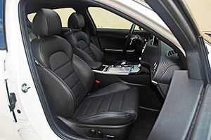 El Stinger mide 4.830 mm de largo y 1.870 mm de ancho, lo que le permite ofrecer un habitáculo muy amplio y un maletero de gran capacidad. Si hablamos de su interior, la sensación de espacio es generosa en todas las plazas. Los asientos, que son sobresalientes tal y como hemos apuntado con anterioridad, permiten que todos los ocupantes viajen con un nivel de confort elevado. Especialmente destaca el puesto de conducción, que es sencillamente perfecto, gracias a la magnífica ubicación de todos los mandos y los amplios reglajes -todos eléctricos- del asiento y el volante.Atractivo... pero también muy funcional