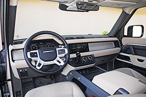 El panel de instrumentos digital de alta resolución puede configurarse para mostrar un par de controles tradicionales, instrucciones de navegación en 3D a pantalla completa o una combinación de ambos. De esta forma, los podemos ajustarlo a nuestros gustos personales y a las circunstancias de cada momento. Adicionalmente, y, en función del acabado elegido, el Defender equipa un sistema HUD de segunda generación. La pantalla TFT a todo color retroiluminada ofrece información importante al conductor, mientras que su nueva capacidad de vídeo puede replicar lo que se muestra en la pantalla táctil central, incluidos los gráficos de articulación que ayudan en los entornos todoterreno.