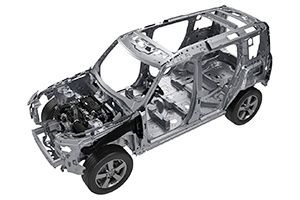 El Land Rover Defender estrena una nueva plataforma, denominada D7x, que está fabricada íntegramente en aluminio. La carrocería de tipo monocasco, también es de aluminio, y es la más rígida que ha producido la marca británica a lo largo de su historia
