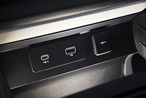 En la segunda fila, los ocupantes cuentan con dos puertos USB y un par de puntos de carga de 12 V (ver imagen). Si el vehículo está equipado con asientos en la tercera fila, se incluyen un puerto USB y un enchufe de 12 V. El espacio de carga tiene un enchufe adicional de 12 voltios, mientras que también está disponible un enchufe doméstico de 230 V de tres clavijas.
