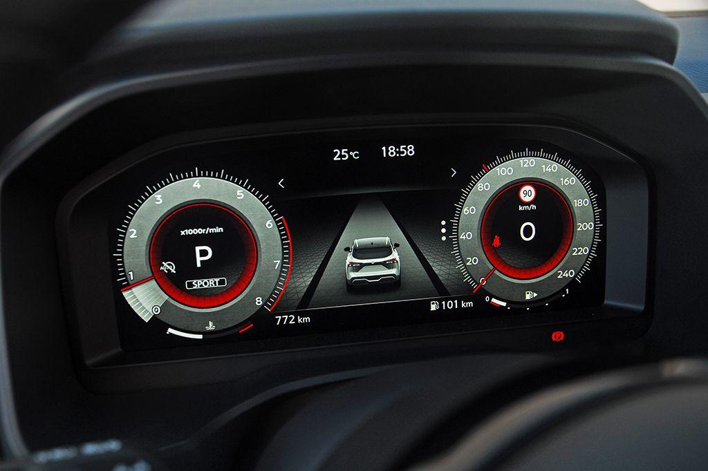 El sistema híbrido ligero de 12 V es una tecnología híbrida que ofrece asistencia de par, parada en ralentí ampliada, arranque rápido y freno motor [solo en versiones con cambio automático Xtronic, que era el caso de nuestra unidad de pruebas], con mejoras tanto en el consumo de combustible como en las emisiones de CO2 (-4 g/km).