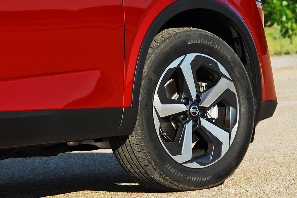 La nueva generación del Qashqai está disponible, por primera vez, con llantas de aleación de 20 pulgadas con corte de diamante (la generación anterior ofrecía llantas de hasta 19 pulgadas). Estas llantas de mayor diámetro rellenan los pasos de rueda para que la estética del conjunto exterior salga ganando. Nuestra unidad de pruebas, asociada al nivel de acabado «N-Connecta», equipaba las llantas de 18 pulgadas. También hay posibilidad de elegir otras de 19 pulgadas. Ninguna de las dos opciones suponen un coste adicional. Las más recomendables son las llantas de 17 pulgadas, pero únicamente están disponibles con el acabado «Acenta». Probablemente nos sean tan deportivas y llamativas que las de mayor tamaño, pero son más lógicas para disfrutar de un mejor nivel de confort, reacciones más progresivas en curva y un consumo más ajustado.