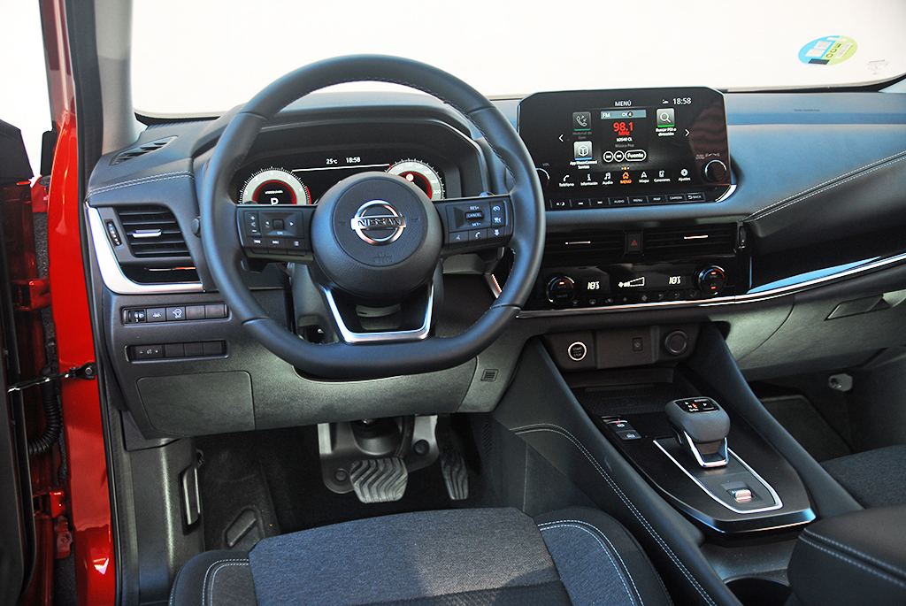Nissan afirma que ha prestado mucha atención a la calidad ergonómica y estética de los interruptores y botones para que transmitan una sensación táctil de alta calidad. Reconozco que los ingenieros de la marca han realizado un gran trabajo para que este Qashqai sea un coche muy funcional. No se ha caído en el error de digitalizarlo todo y eso ha sido un gran acierto. Todos los mandos y botones se identifican con rapidez y están muy bien diseñados. También se ha apostado (acierto rotundo) por incorporar mandos giratorios para gestionar el climatizador y algunas funciones importantes del equipo de sonido, el volumen entre ellas (su tacto podía ser un poco mejor). En este sentido, Nissan ha conseguido simplificar el salpicadero de botones de una manera brillante.