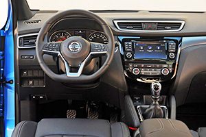 El interior, sin llegar a la calidad y solidez de un Volkswagen Tiguan, ofrece un buen acabado en líneas generales y unos materiales que resultan agradables al tacto y a la vista. El sistema de información y entretenimiento NissanConnect, que agrega navegación por satélite, ahora también cuenta con una nueva interfaz de usuario más inteligente. Por su parte, el nuevo sistema de audio premium Bose de siete altavoces se incorpora como opción para los grados altos de la gama. Merece la pena adquirirlo si eres de los que valoras un equipo de sonido de calidad.La flexibilidad del espacio de carga sigue siendo uno de los puntos fuertes del SUV japonés. Ofrece un portón que se abre a una altura 150 mm mayor, una distancia perfecta para que el portón sea accesible para diferentes alturas y deje una amplia boca de carga. En el maletero, destaca el piso que puede situarse a dos alturas. Los dos paneles de piso reversibles puede fácilmente elevarse o bajarse proporcionando hasta 16 configuraciones distintas para aumentar el espacio de carga o permitir crear un piso completamente plano cuando se abaten los asientos traseros. Además, la parte trasera de este falso piso doble puede situarse fácilmente en posición vertical creando un espacio perfecto para cargar las bolsas de la compra y mantenerlas sujetas. Por lo que respecta a la bandeja cubre-equipajes, puede situarse bajo el piso cuando se carguen elementos muy voluminosos y deba retirarse de su emplazamiento. Las bandejas de piso tienen una superficie plástica, fácil de limpiar en una de sus caras y una suave moqueta en la otra de manera que pueden dejarse sobre ellas objetos sucios o mojados sin miedo a que estropeen las superficies textiles. La capacidad del maletero, en condiciones normales, es de 430 litros.