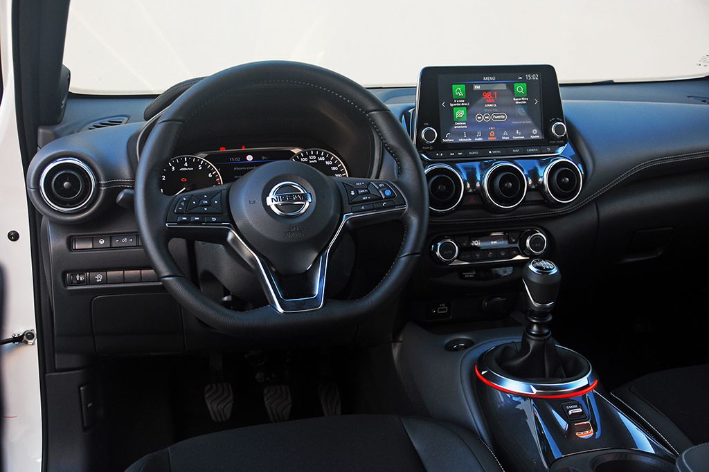 El habitáculo se ha rematado con materiales de alta gama que ofrecen más estilo y confort. Los nuevos materiales suaves utilizados en el salpicadero, la tapicería de las puertas y el espacio para los pies también aportan una sensación de alta calidad. Los asientos monoforma con respaldo de una sola pieza aportan una gran sujeción lateral y se pueden tapizar en Alcantara o piel. En este apartado, el Juke juega en otra liga.
