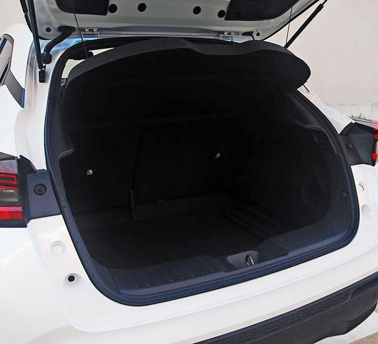 El maletero cuenta con una capacidad de 422 litros, un buen dato si tenemos en cuenta el tamaño del vehículo. Sus formas nos permiten aprovechar cada litro y, además, el piso se puede ajustar a dos alturas. Para incrementar el volumen del mismo, los respaldos de los asientos posteriores se pueden abatir en proporción 60/40. El guarnecido y la iluminación es normal, algo que se encuentra en la totalidad de sus oponentes.