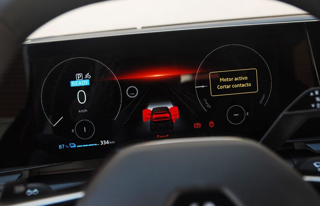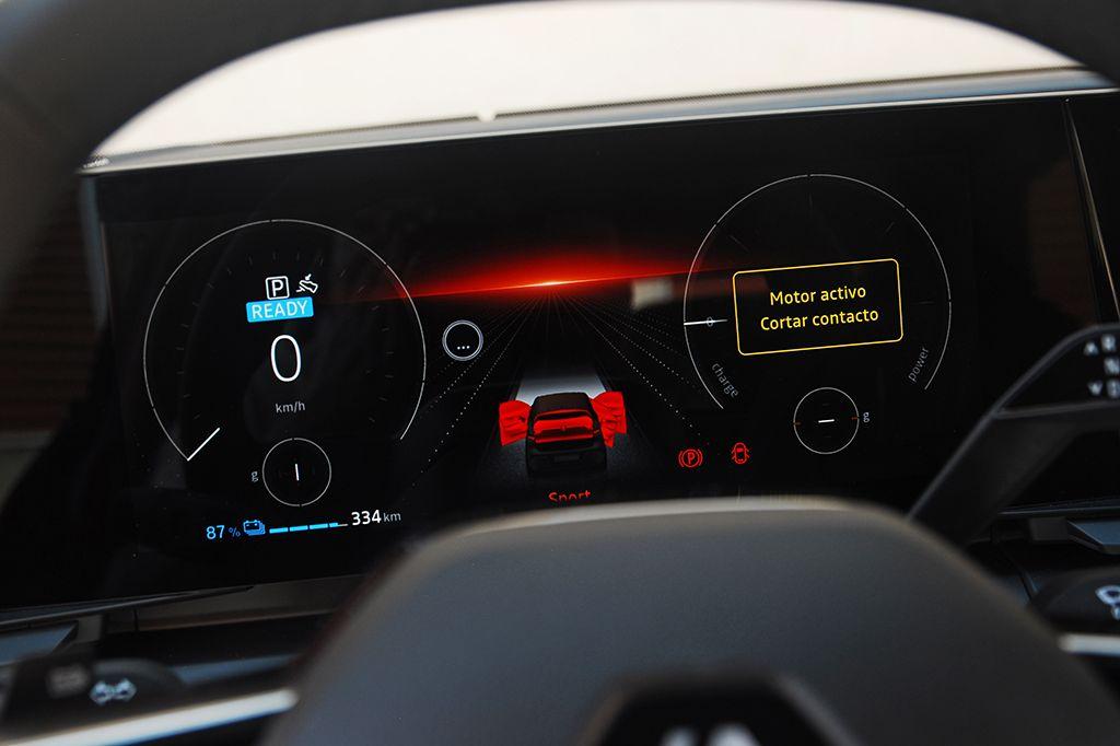 El Renault Megane E-TECH ofrece hasta veintiséis ayudas a la conducción que se reparten en tres categorías: conducción, aparcamiento y seguridad. No hemos tenido suficiente tiempo para poder probar cada uno de ellos en profundidad, por lo que no podemos hablar de su buen o mal funcionamiento. Entre todo lo que ofrece el eléctrico de Renault, destacan elementos como regulador de velocidad adaptativo, función de centrado de carril, limitador de velocidad inteligente, alerta de salida de carril, alerta de ángulo muerto, asistencia de mantenimiento de carril, frenado automático de emergencia marcha atrás, salida segura del ocupante y asistente de estacionamiento con cámara 3D con visión de 360 grados.
