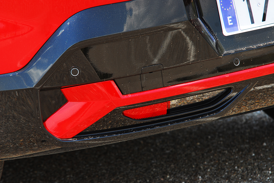 Otro de los elementos distintivos es el color dorado Warm Titanium que, en el acabado superior, revisten la lama de los paragolpes delanteros y traseros, así como las tomas de aire laterales del paragolpes delantero.