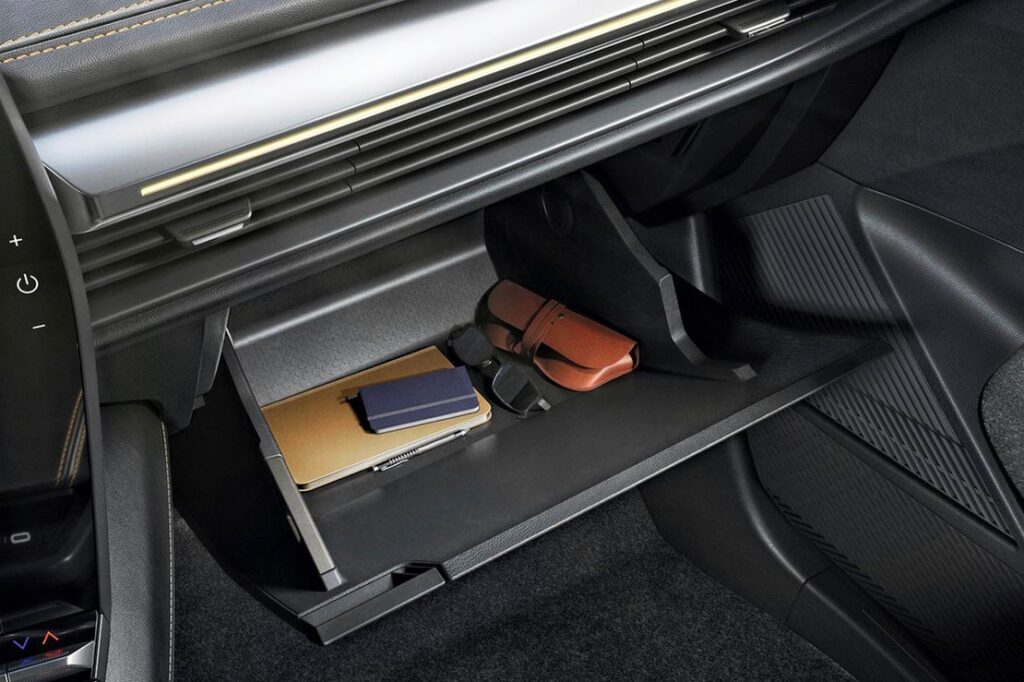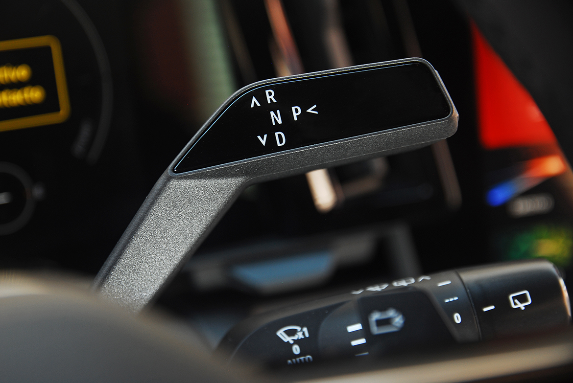 Ya sean modelos eléctricos o simplemente térmicos con transmisión automática, yo siempre prefiero la palanca de cambios tradicional (en mi opinión es la mejor solución). En el caso del Mégane eléctrico, Renault ha emplazado la palanca de velocidades detrás del volante, al puro estilo Mercedes-Benz (me parece mejor solución que un mando giratorio, aunque no permite visualizar parte del cuadro de instrumentos). El volante también acoge el botón de los reglajes MULTI-SENSE (es la denomiación que Renault da a sus perfiles de conducción). La ubicación de ambos mandos en el volante, ha permitido liberar un gran espacio entre los dos asientos delanteros y ofrecer un práctico espacio de almacenamiento abierto de 7 litros de capacidad. Permite, por ejemplo, guardar un bolso de mano o un objeto voluminoso que se desea tener a mano, así como recibir accesorios y disponer de una zona adaptada a todos. A este espacio se suman los 2 litros del portavasos y los 3 litros de almacenamiento situados debajo del reposabrazos central que se desliza 55 mm, ofreciendo más confort a los pasajeros delanteros. En total, el Mégane E-TECH propone así un total de 30 litros de almacenamiento a bordo, el mejor volumen de almacenamiento interior de su categoría.