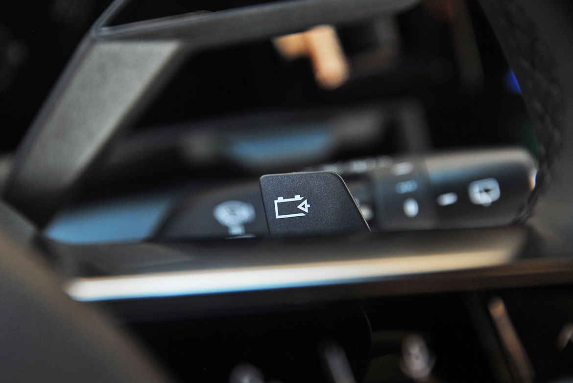 El tacto de los frenos tampoco nos ha gustado, pues, como suele ocurrir en los híbridos y eléctricos, no deja de ser un sistema de frenado regenerativo más que un freno tradicional. Esto provoca que varíe la asistencia de la frenada, al margen de lo que cuesta dosificarla en casi cualquier circunstancia. No supone un problema en cuanto a seguridad se refiere, pero penaliza mucho en cuanto a agrado de conducción. Como en otros modelos equivalentes, este sistema permite recuperar la energía que se pierde en las deceleraciones y las frenadas. Además, dispone de cuatro niveles de retención que se pueden gestionar desde unas levas situadas detrás del volante.