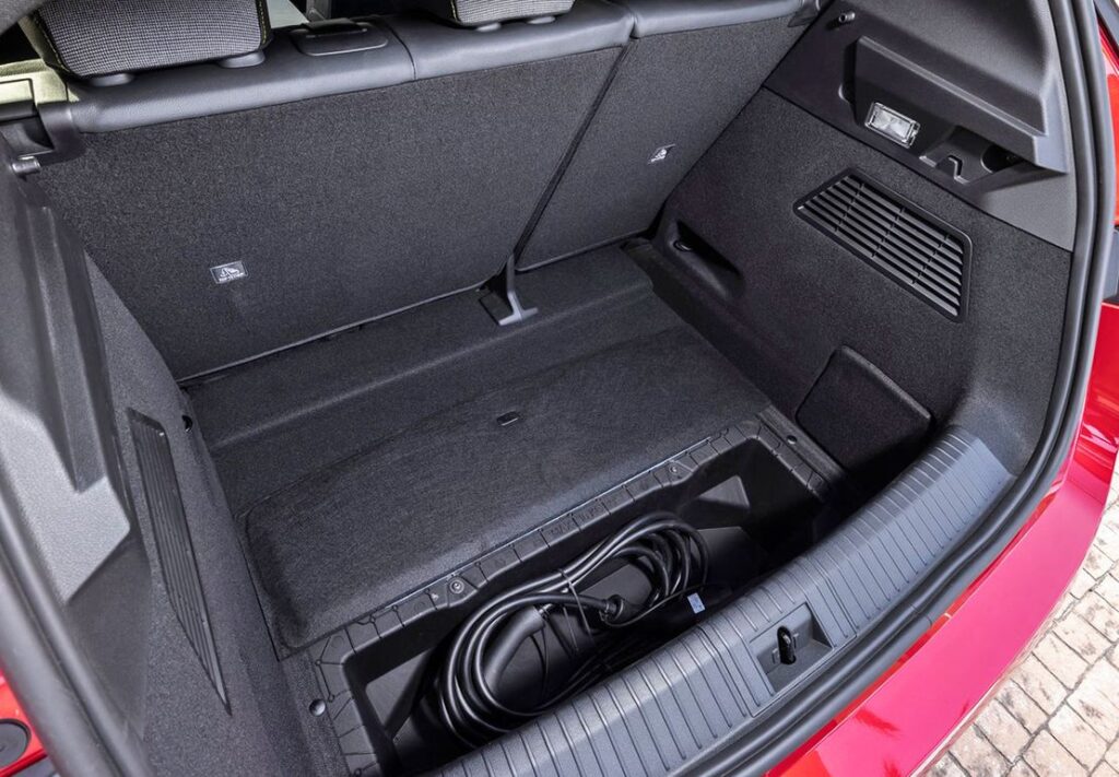 En cuanto al maletero, ofrece un volumen total de 440 litros (o 389 dm3 VDA), 100 % útiles por su forma rectangular. En este volumen, los cables de recarga cuentan con un espacio específico de 32 litros (o 22 dm3 VDA) accesible a través del doble piso. Los cables también se benefician de otros posibles accesorios específicos (bolsa, sujeta-cable, asa porta-cable, etc.). Para aumentar el volumen de carga, los asientos traseros de abaten en 2/3-1/3.