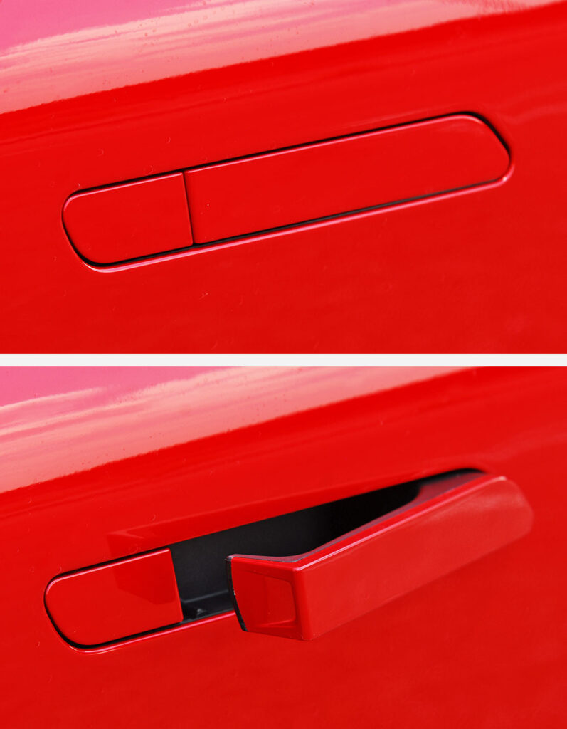 Todas las versiones del Mégane E-TECH incorporan tiradores de puerta enrasados por aquello de ganar un poco más en eficiencia aerodinámica. Cuando el conductor o el pasajero delantero se acercan para abrir una puerta, o cuando el vehículo está desbloqueado, los tiradores ocultos en la carrocería salen automáticamente gracias a un sistema eléctrico. Vuelven a su posición cerrada al cabo de dos minutos de estacionamiento, cuando el coche empieza a avanzar o cuando se bloquean las puertas.