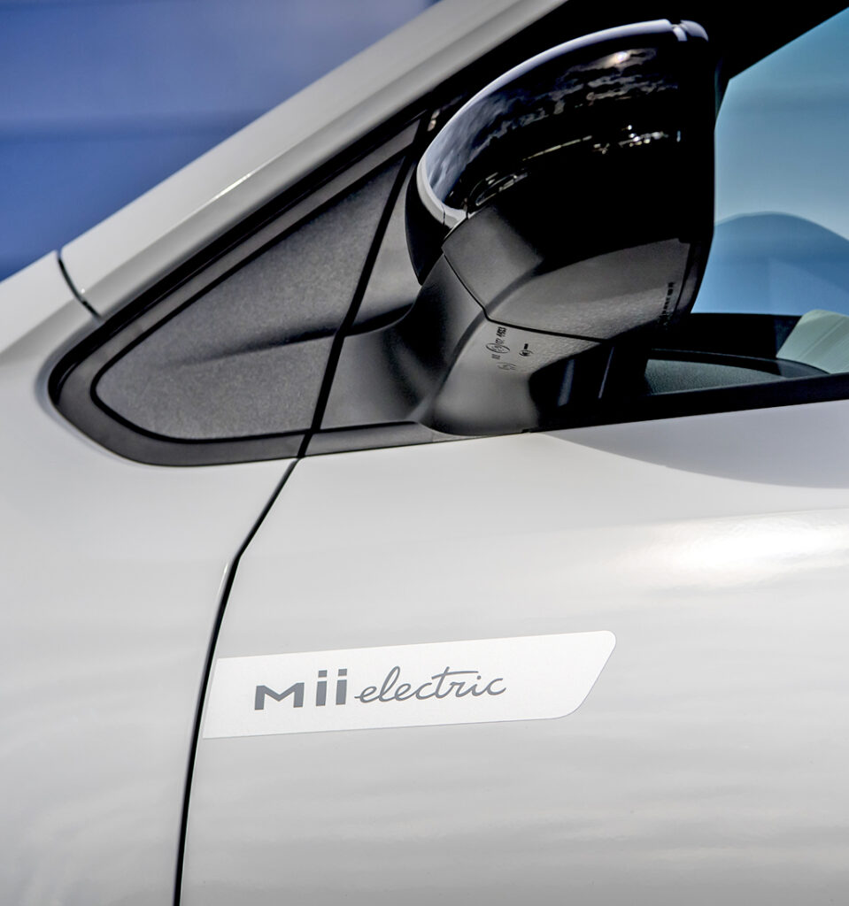 Las dimensiones exteriores del Mii electric lo convierten en una opción muy práctica para la ciudad: tiene una longitud de 3556 mm, una anchura de 1645 mm, una altura de 1481 mm y una distancia entre ejes de 2421 mm.