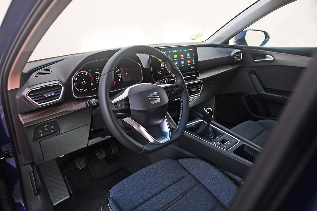 En el nuevo León, SEAT ha llevado la digitalización casi al extremo. Y es que, la pantalla multifunción ubicada en el centro del salpicadero aglutina todas las funciones del vehículo, dejando en manos de los mandos físicos las funciones de seguridad que tengan que ser de accionamiento rápido, como las luces de emergencia, arranque/parada del motor, activación/desactivación del sistema start/stop y el freno de estacionamiento. Tampoco se han tocado otros mandos tradicionales, como los elevalunas, bloqueo de los mismos en las plazas posteriores y la regulación de los espejos retrovisores. Quizás, al menos en mi opinión, por aquello de conseguir atajos para dinamizar el manejo de las funciones que se suelen utilizar con mayor frecuencia, hubiera sido una decisión acertada integrar botones tradicionales para acceder directamente, por ejemplo, a los modos de conducción, climatización y asistente de estacionamiento. Si entramos en comparaciones con otros modelos del Grupo Volkswagen, la solución que ha aplicado Skoda en el nuevo Octavia me parece, en mi opinión, más acertada. La del Golf me gusta menos.
