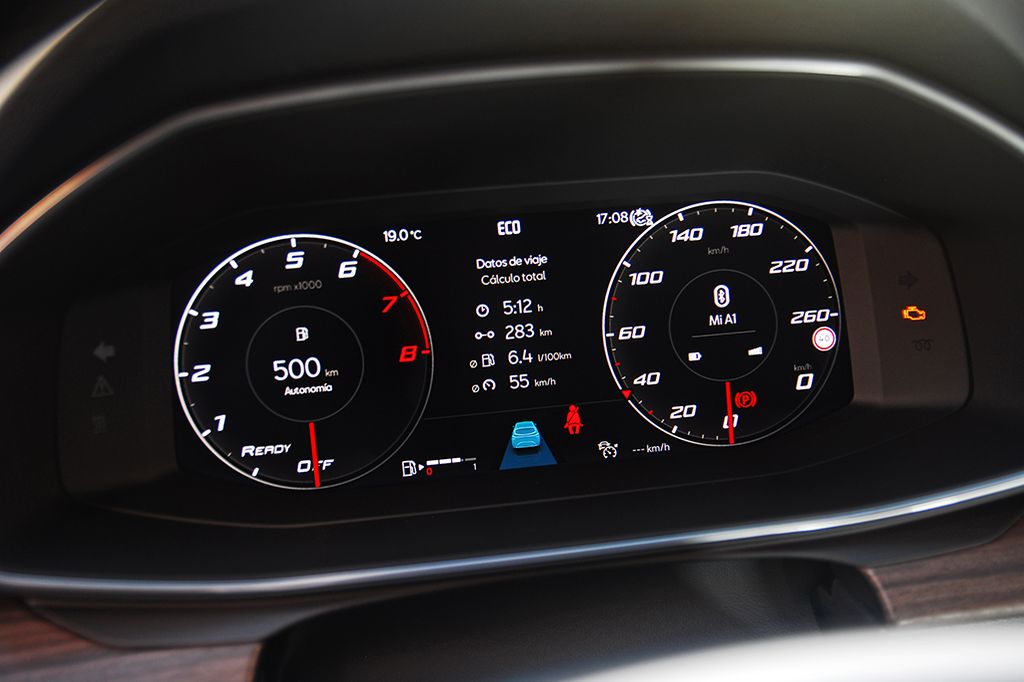 El cuadro de instrumentos también es virtual, y, al igual que la pantalla multifunción ubicada en el centro del salpicadero, ofrece una resolución de calidad (mejor que la de un Skoda Octavia), muestra toda la información de una manera ordenada y ofrece una interfaz muy agradable a la vista.