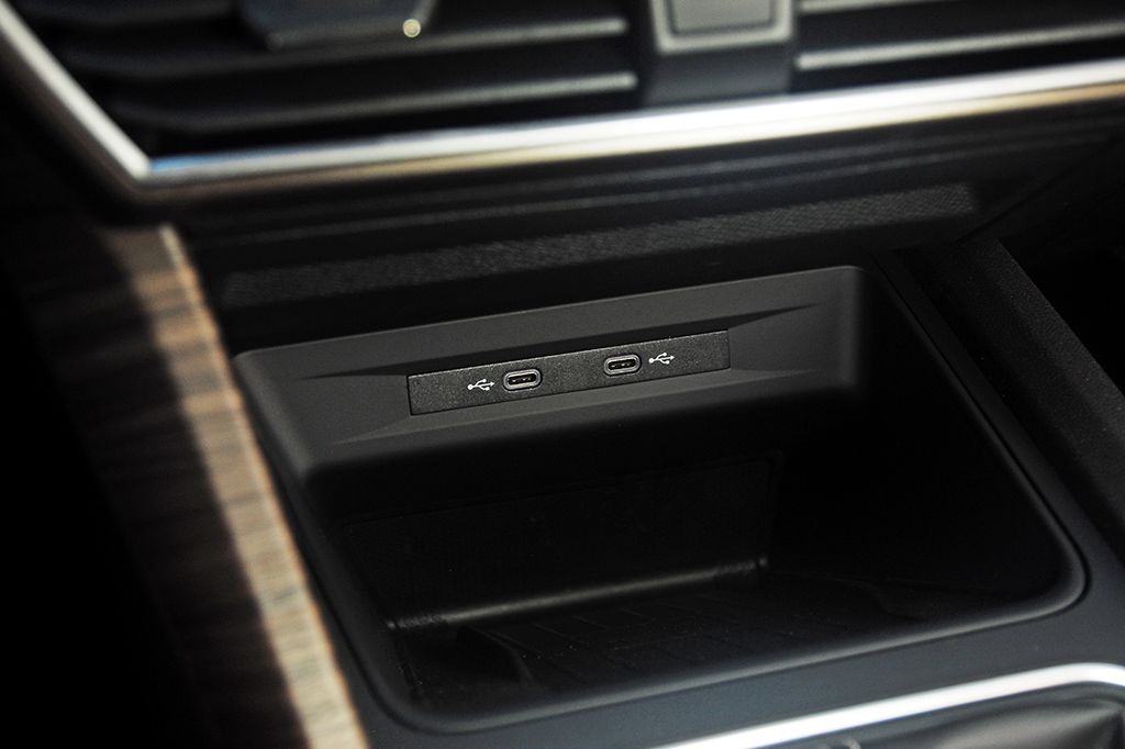 Para la recarga del teléfono móvil, disponemos dos tomas USB-C en la consola central, y otras dos en las plazas posteriores. Además, los pasajeros delanteros tienen la posibilidad de cargar la batería del teléfono mediante la tecnología de inducción.