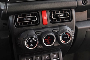 El Jimny cuenta con un sistema 4WD a tiempo parcial con reductora que puede hacer fácilmente el cambio entre los modos 2H (2WD-marcha alta), a 4H (4WD-marcha alta) y 4L (4WD-marcha corta) gracias a una palanca conectada directamente a la caja transfer. Comparado con el modo 4H, el modo 4L puede transferir más par a las ruedas en marchas bajas para conseguir una mejor tracción en cuestas empinadas y terreno desigual. Cuando dos ruedas situadas diagonalmente pierden tracción, el control de tracción SLD del Jimny las frena automáticamente para redistribuir el par al otro lado y permitir que el vehículo recupere la tracción. Este sistema permite al Jimny salir de superficies resbaladizas y caminos con baches.Equipamiento de última generación