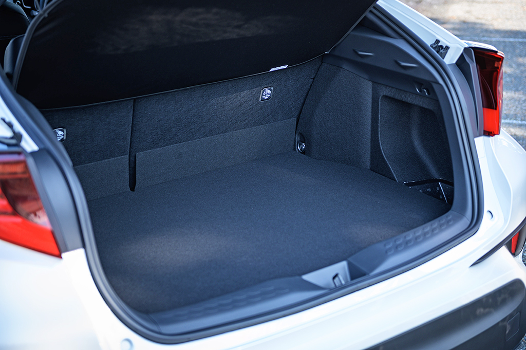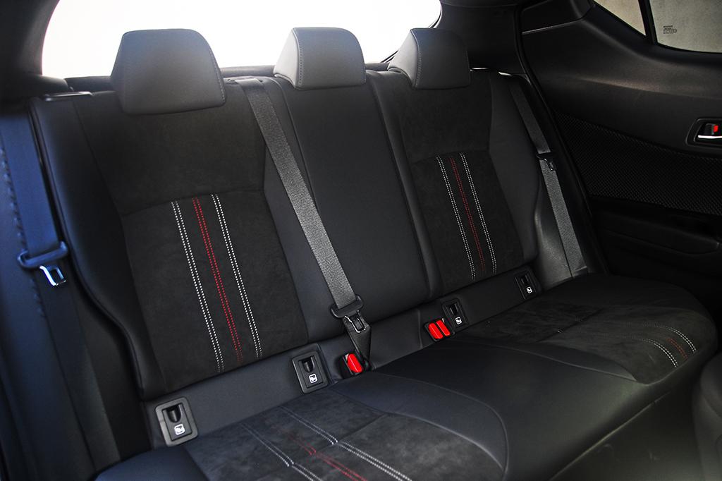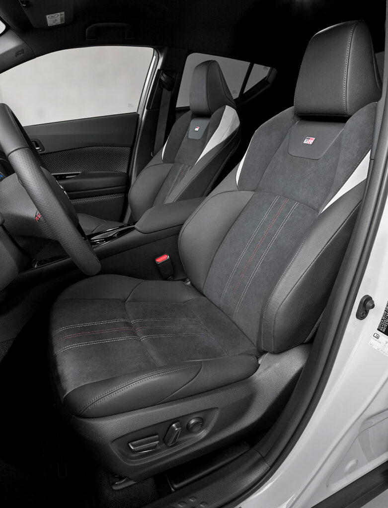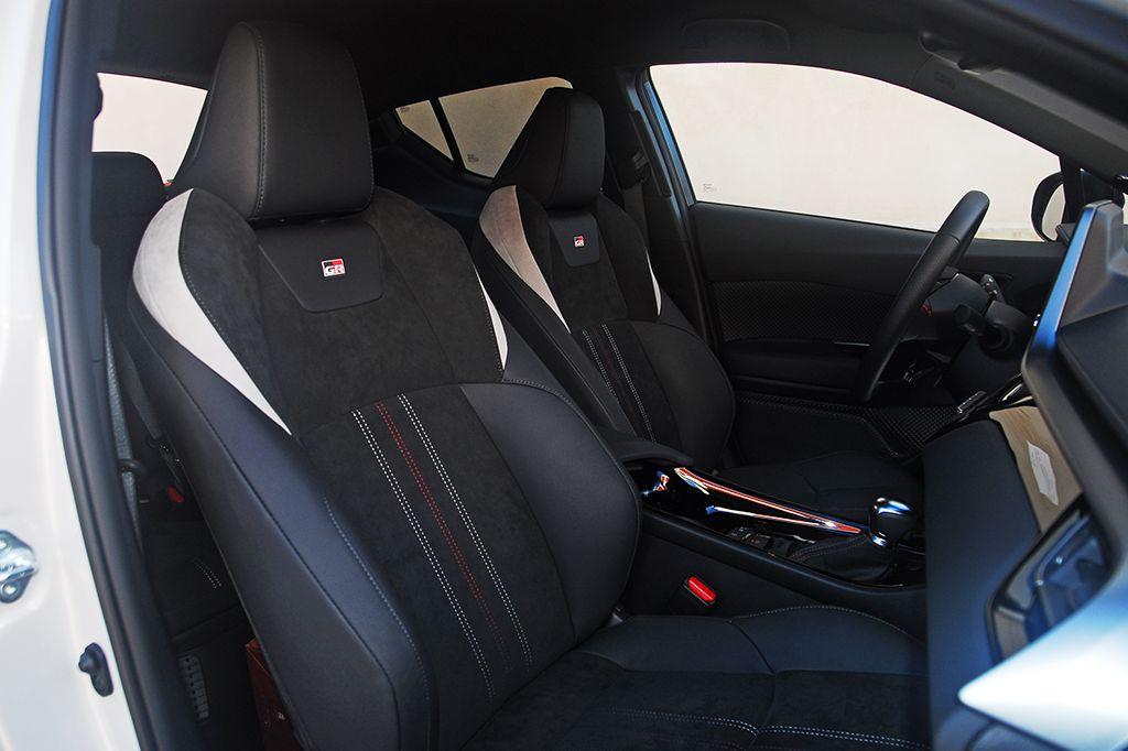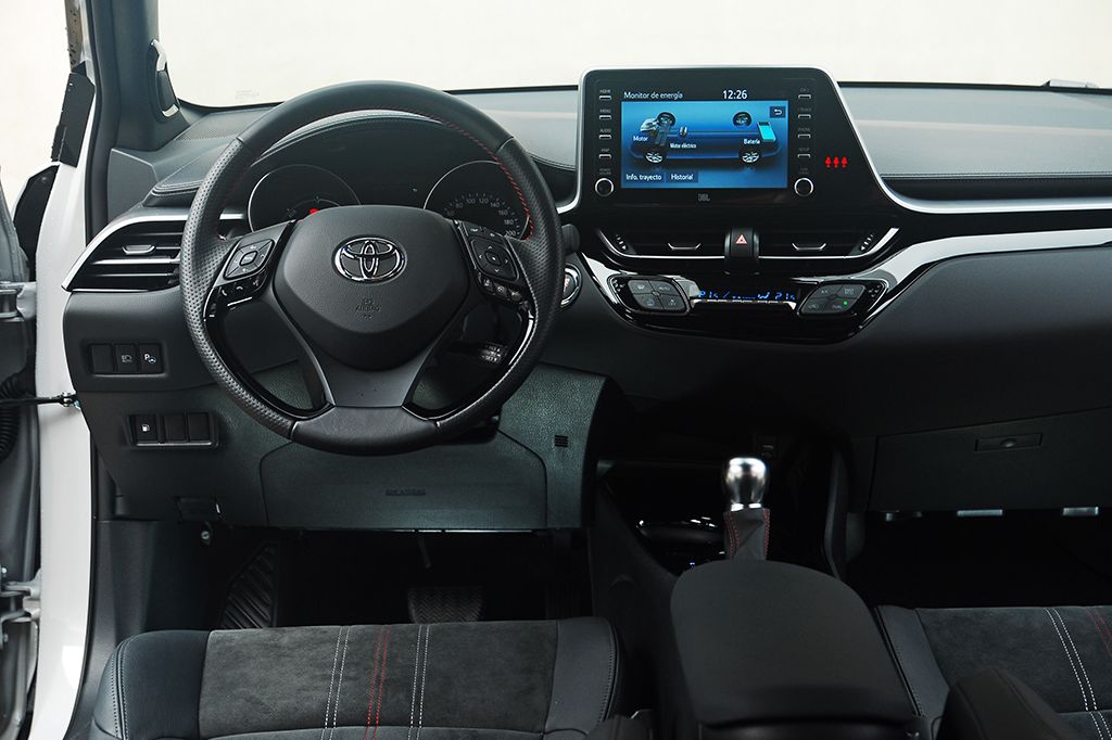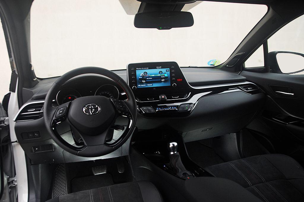 En el habitáculo los cambios son algo más sutiles. Salvo los asientos y el volante, el resto del interior es exactamente igual que un CH-R con un nivel de equipamiento equivalente. Los asientos, por estructura y diseño, no cambian respecto al resto de versiones. Tan sólo presentan un guarnecido distinto con un combinado de piel y Alcantara que plantea un diseño distinto, y en el que luce el emblema 'GR' en la parte superior del respaldo. Por lo demás, el volante, que también es idéntico por diseño y formas, cuenta con un guarnecido en piel con algunas zonas perforadas. Tampoco faltan las costuras en color rojo en el volante y en la funda de la palanca del cambio.
